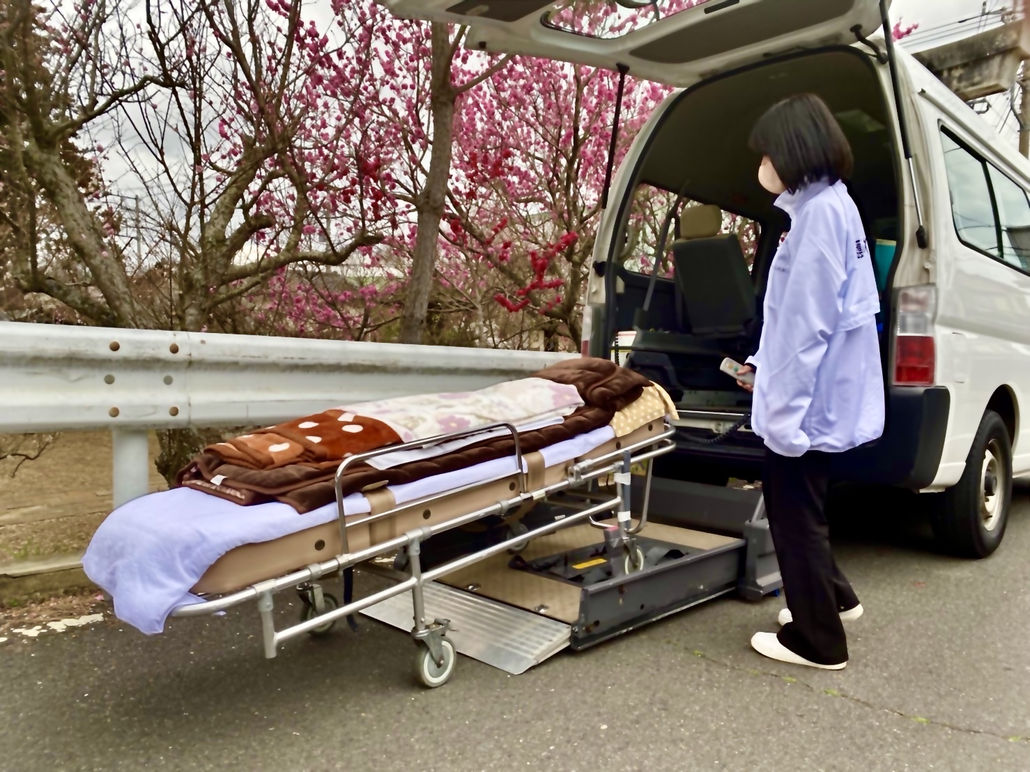 ストレッチャー等での移動が困難な狭い場所で使用いたします。